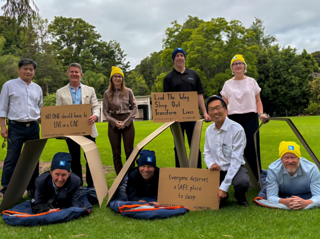 The Vinnies CEO Sleepout is a national movement where business and community leaders spend one night sleeping outdoors to raise funds and awareness for homelessness.